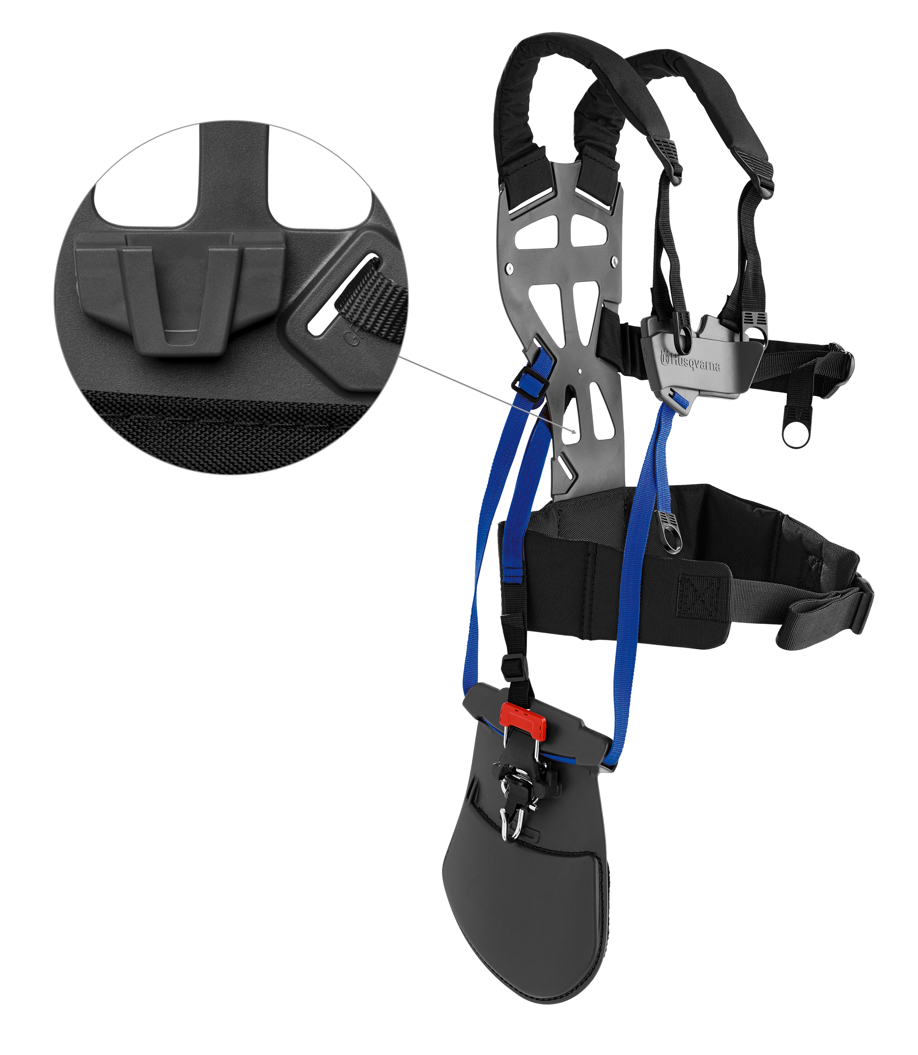Leveres med snørrehovede T25B M10 + 3-tands græsklinge 255-3 + sele Balance 35B